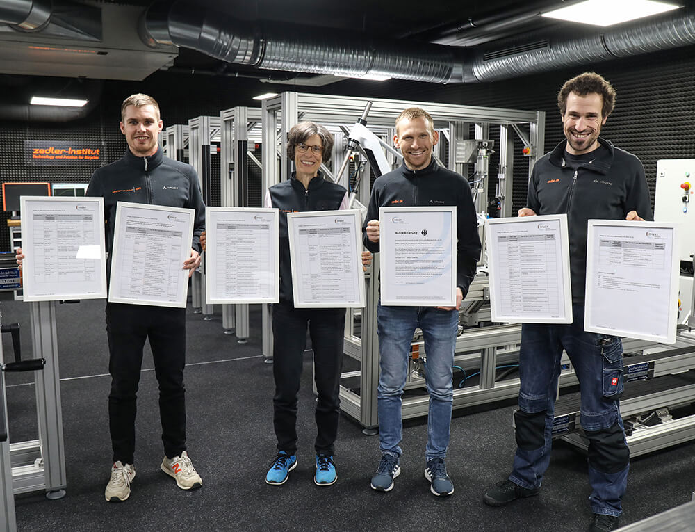 Zusammen mit der Tatsache, dass nahezu alle Prüfsysteme mindestens dreifach vorhanden sind, ermöglicht die interne Kalibrierung, dass die Prüfungen eingehender Testmuster in der Regel tagesaktuell starten. Das vom Zedler-Institut gegebene „48 Stunden-Versprechen“ bis zum Prüfstart prüffähiger, komplett angelieferter Prüflinge in den Prüfkategorien Performance, Quality und Safety kann dadurch im Grunde immer gehalten werden. Das Einhalten dieses Versprechens wird ebenfalls seitens der DAkkS kontrolliert.