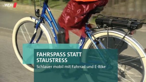 A current WDR program by Yvonne Willicks checking everyday household objects ("Haushaltscheck") reported 45 minutes about two-wheelers. The TV presenter rode a race by bicycle against her camera team by car (and won in congested Cologne), attended shows, had herself informed about e-bikes and three of them tested by bicycle expert Dirk Zedler, dealt with the repair of bicycles and the current traffic situation. All in all the entire report was a nice plea for cycling combined with the call on politics to provide improved conditions for cycling.